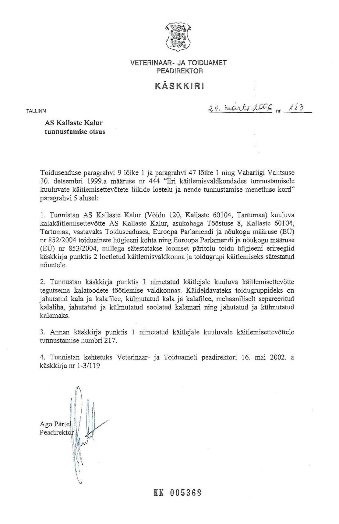 OÜ Kallaste Kalur tunneb ja täidab oma vastutust kalatöötlemisele pühendunud ettevõttena: